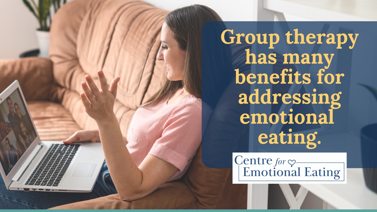 I know that many people are hesitant about group therapy, especially when it comes to something as vulnerable as emotional eating. It is something that thrives when hidden and there is a societal belief that eating is “simple” and that you should “just be able to get a handle on it.” Bringing your experiences out in front of others can feel incredibly scary but, again and again, I have seen the transformational experience of group therapy for emotional eaters.